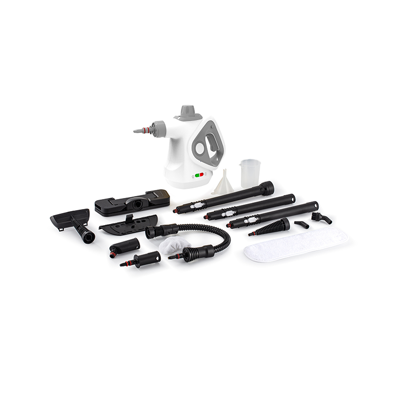 READ MORE TM-377 900-1050W 다목적 휴대용 스팀 청소기(대걸레 포함)는 광범위한 가정용 청소 작업을 처리하도록 설계된 올인원 청소 솔루션입니다. 이 다용도 스티머는 강력한 스팀 청소와 걸레의 편리함을 결합하여 바닥, 창문, 주방 표면 등을 청소하는 데 적합합니다. TM-377은 독한 화학 물질 없이 살균하고 청소할 수 있는 탁월한 성능을 제공합니다. 단 1~3분 만에 가열되고 최대 10분간 연속 스팀을 제공하므로 심층 청소 및 심한 얼룩 제거에 이상적입니다. 길고 구부러진 스프레이 노즐, 원형 브러시, 연장 호스, 수건 등 필수 도구로 구성된 16피스 액세서리 세트에 걸레 튜브 3개, 걸레 이송 커넥터 2개, 긴 소매 타월, 걸레 바닥 등 7가지 걸레 액세서리가 추가되어 바닥 청소에 특히 효과적입니다.